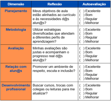 1. Melhoria Constante - Nenhum prof está "pronto" – a educação é um processo dinâmico, e a autoavaliação permite ajustes e evolução.