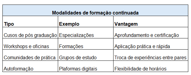 Dados do INEP (2023) mostram que professores que participam de programas de formação continuada têm 20% mais engajamento em práticas inovadoras.